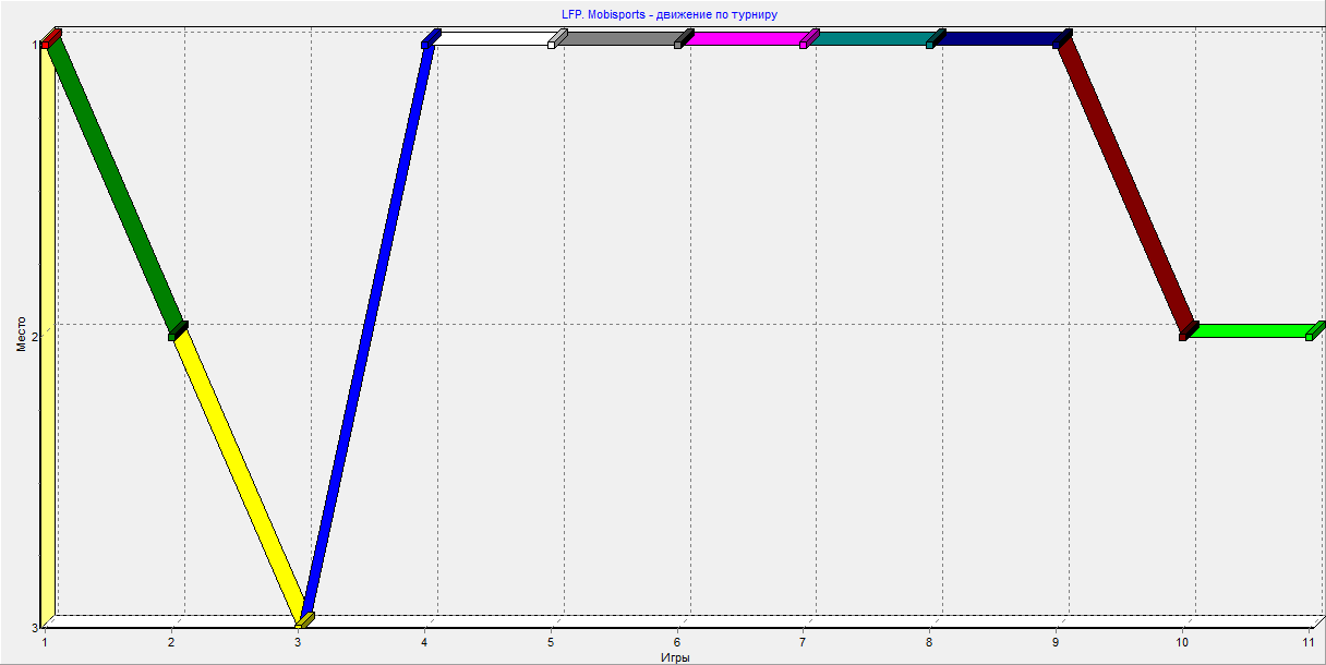 1 место: 7 побед 1 ничья 3 поражения, мячи 15-12