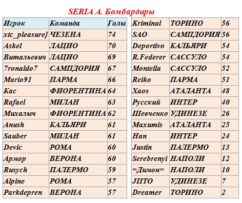 [blue]7. Лацио 40 очков [/blue] Витальевич и Askel по +20 млн.евро +40000 фанатов