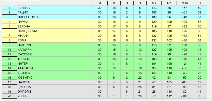 [blue]1. Сассуоло 27 очков[/blue] R.Federer и Montella по +13.5 млн.евро +27000 фанатов