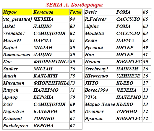 [blue]10. Парма 38 очков [/blue] Mario91 и Reiko по +19 млн.евро +38000 фанатов