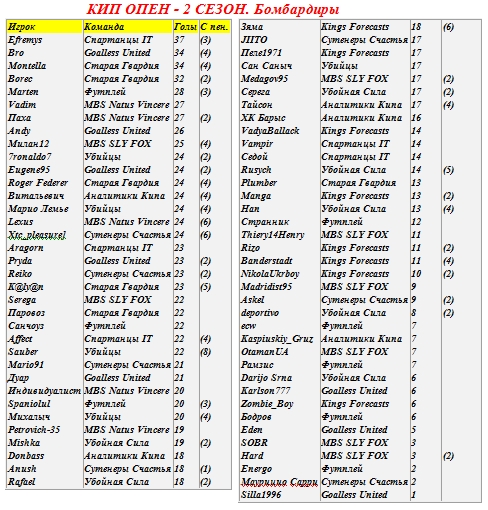 2 место Goalless United (Bro, Andy, Eugene95, Karlson777, Pryda, Дуар) - 30% призового фонда то есть 690 руб, плюс каждому игроку 80 баллов в реитинг прогнозистов саита кип и 100 млн в фут.менеджер