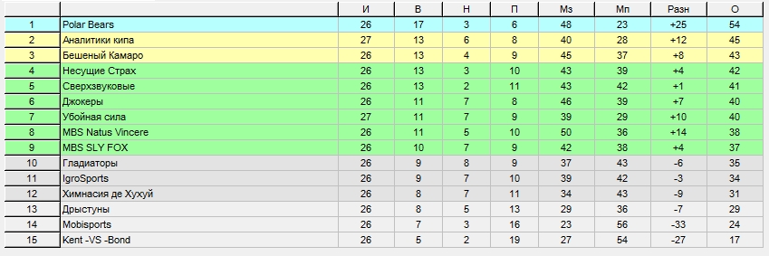 1 место Polar Bears (Dоnbаss,-МАРИО_ЛЕМЬЕ-,Кriminаl,Паровоз,Falcon) - по 50 млн евро + 50000 фанатов + 90 баллов