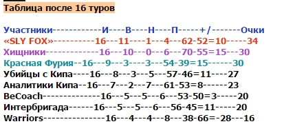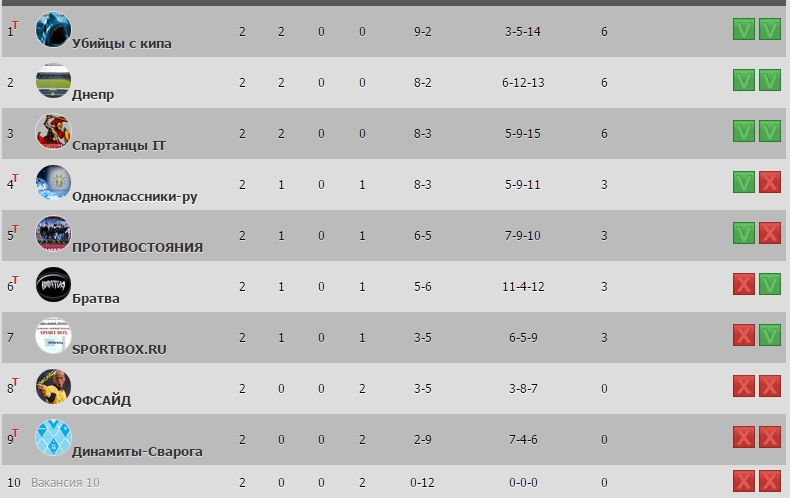 ТАБЛИЦА ПОСЛЕ 2 ТУРОВ НА SportGiant