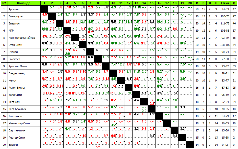 19. Саутгемтон - 5 оч. 13-87